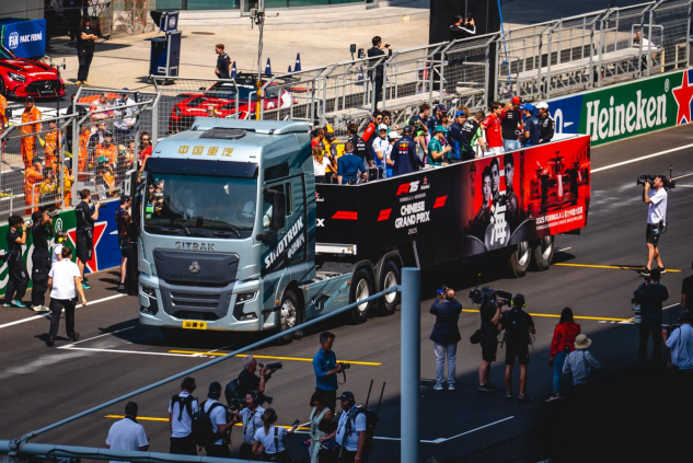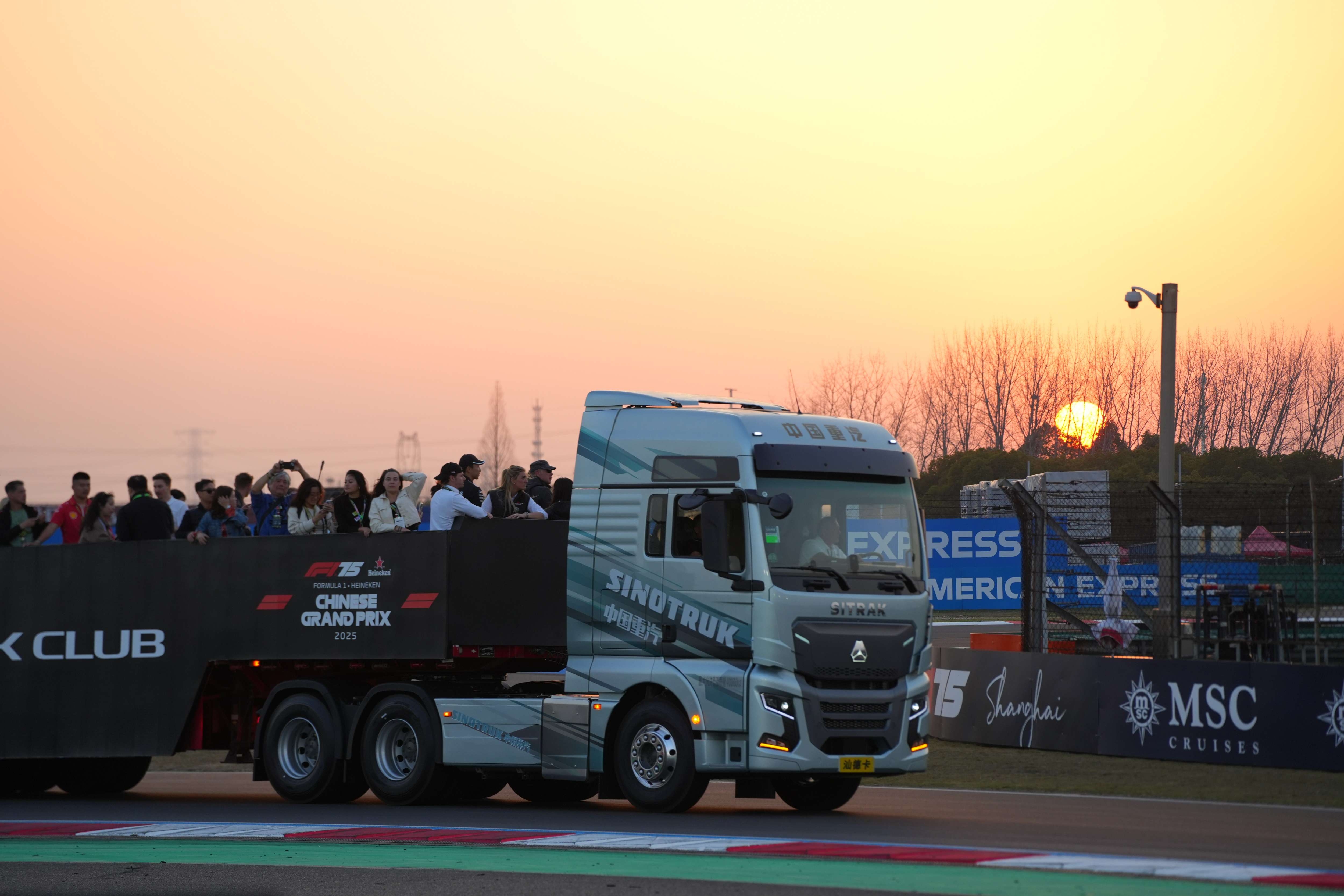 ??中国重汽专程为赛事定制了4辆汕德卡,提供观众及车手巡游服务支持。3月23日正赛日,中国重汽赛事涂装巡游车化身钢铁先锋,在全球顶尖F1车手的带领下开启赛道巡礼,与全球观众一同见证F1中国大奖赛最富张力的精彩时刻!中国重汽SITRAK以高端驰名全球,凭借其“高效、智能、可靠、舒适”的卓越性能,成为F1赛道中最靓丽的风景线。在这场跨越商用车与赛车领域的巡礼中,众多身价过亿的国际顶尖车手乘坐SITRAK,再次刷新了中国重汽品牌的世界级影响力!中国智造的轰鸣正通过全球信息窗口,向世界传递“力量承载,速度引领”的宣言。